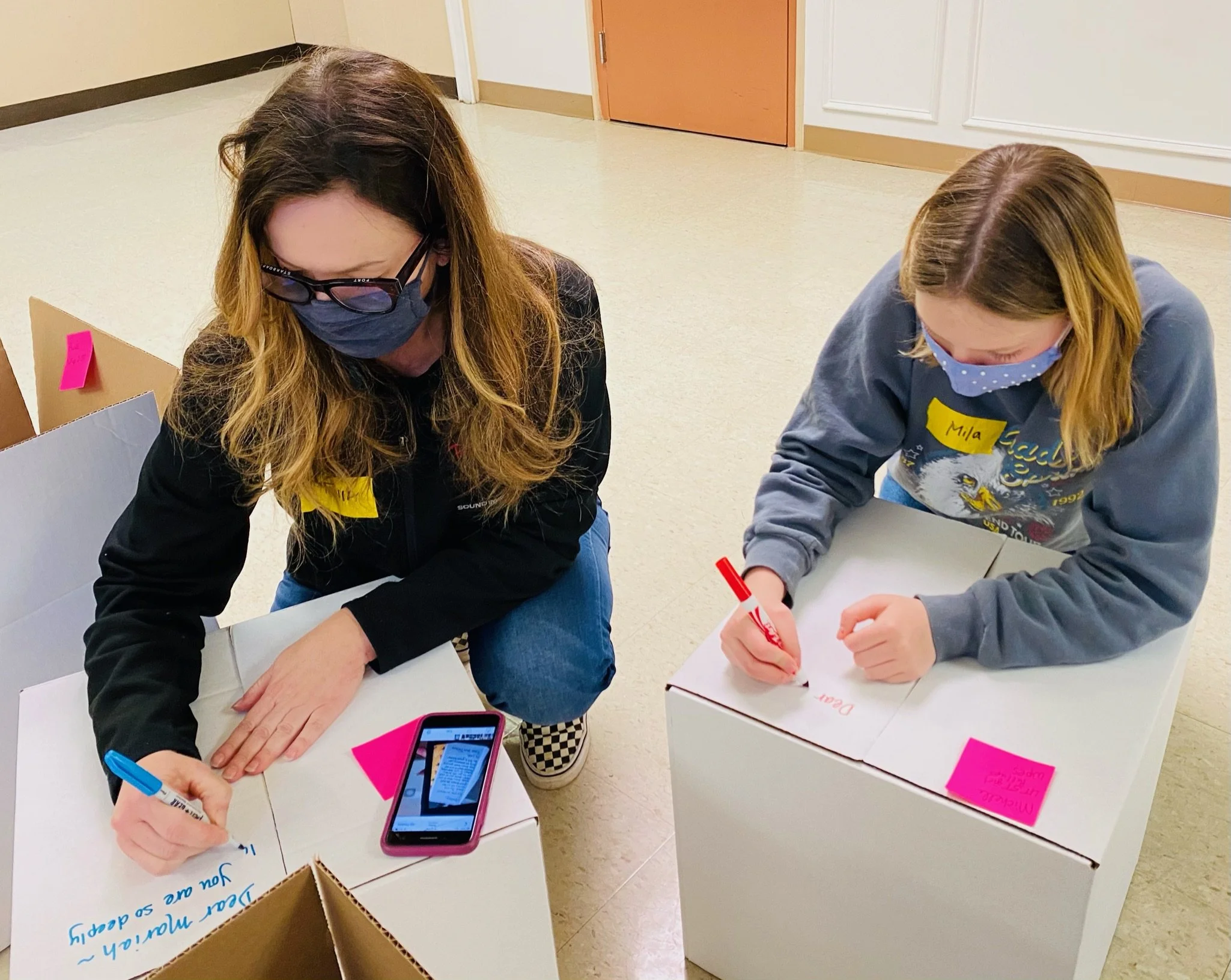 Volunteers Pack: Community members fill each box with care that can be picked up or delivered.